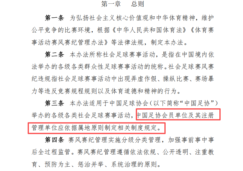 足协出台管理办法里,其实说的根本不是收编,而仅仅是建议和权利说明。比如‘办法’中开头的这一句:“本办法适用于中国足球协会举办的各级各类社会足球赛事活动,中国足协会员单位及其注册管理单位应依据属地原则制定相关制度规定。”